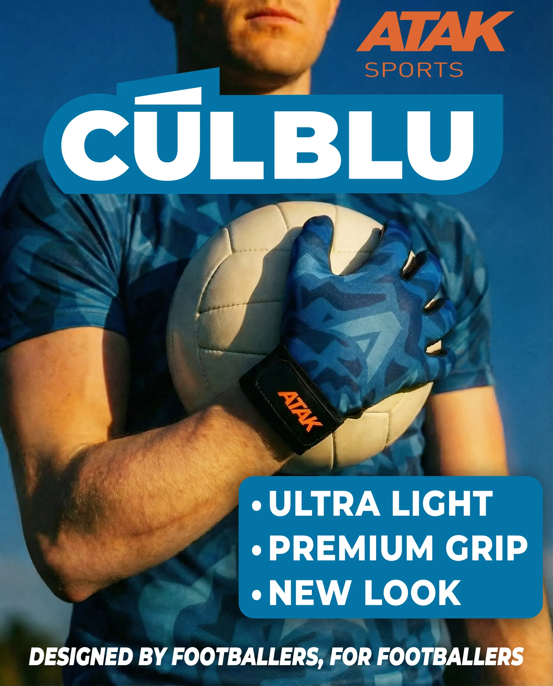 Featuring a striking new aesthetic, the Cúl Blu is for the player who wants to make a statement without sacrificing a millimeter of performance. It offers the same superior ball grip and skin-tight fit that has made Atak the choice of champions, now wrapped in a bold new look.